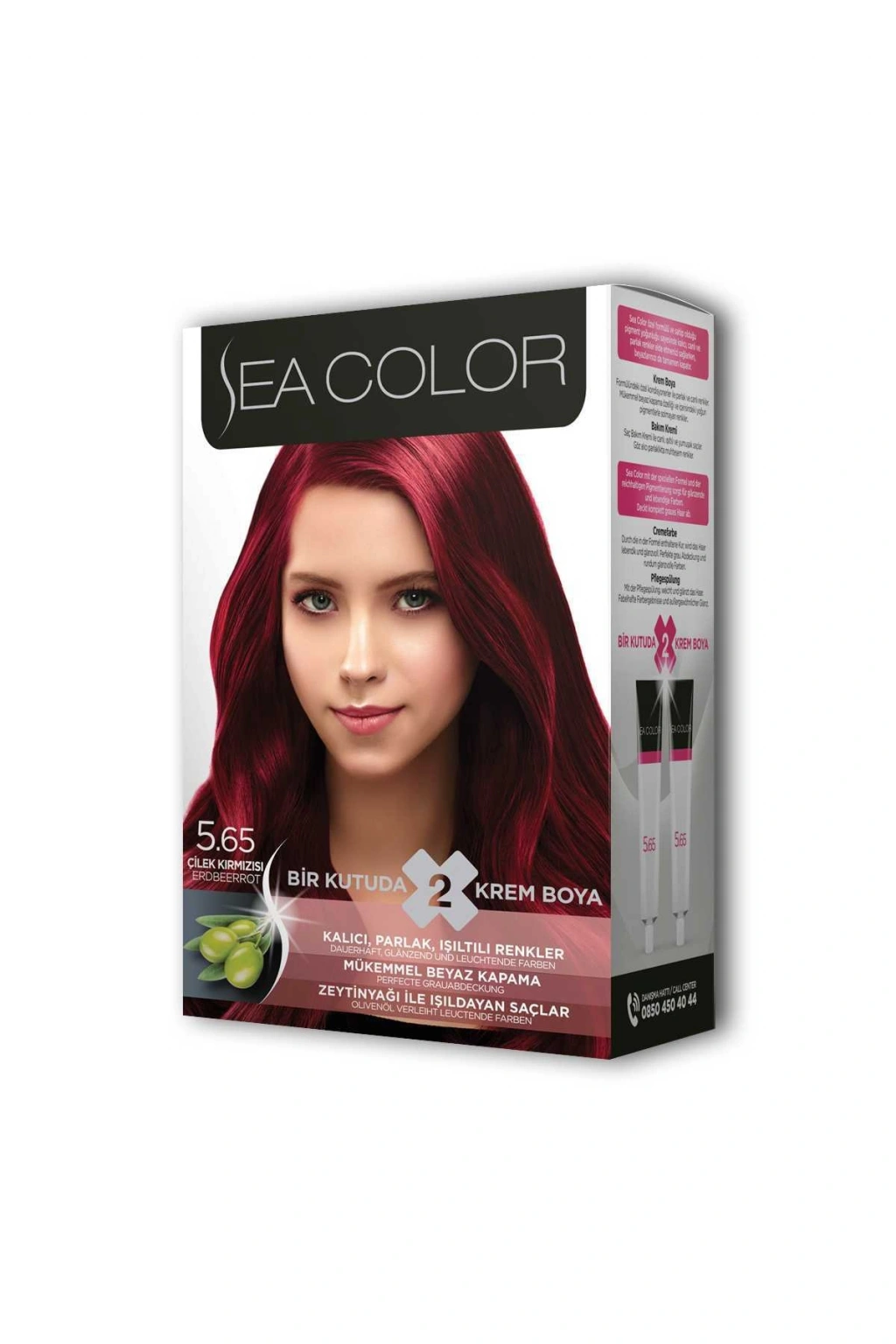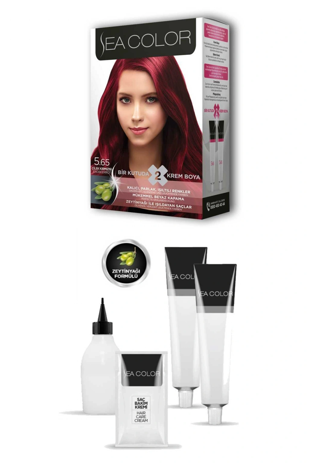 Sea Color 2 tüp Krem Saç Boyası Seti Çilek Kırmızısı No:5.65