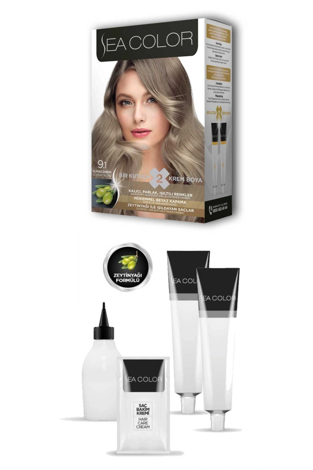 Sea Color 2 tüp Krem Saç Boyası Seti Elmas Sarısı No:9.1