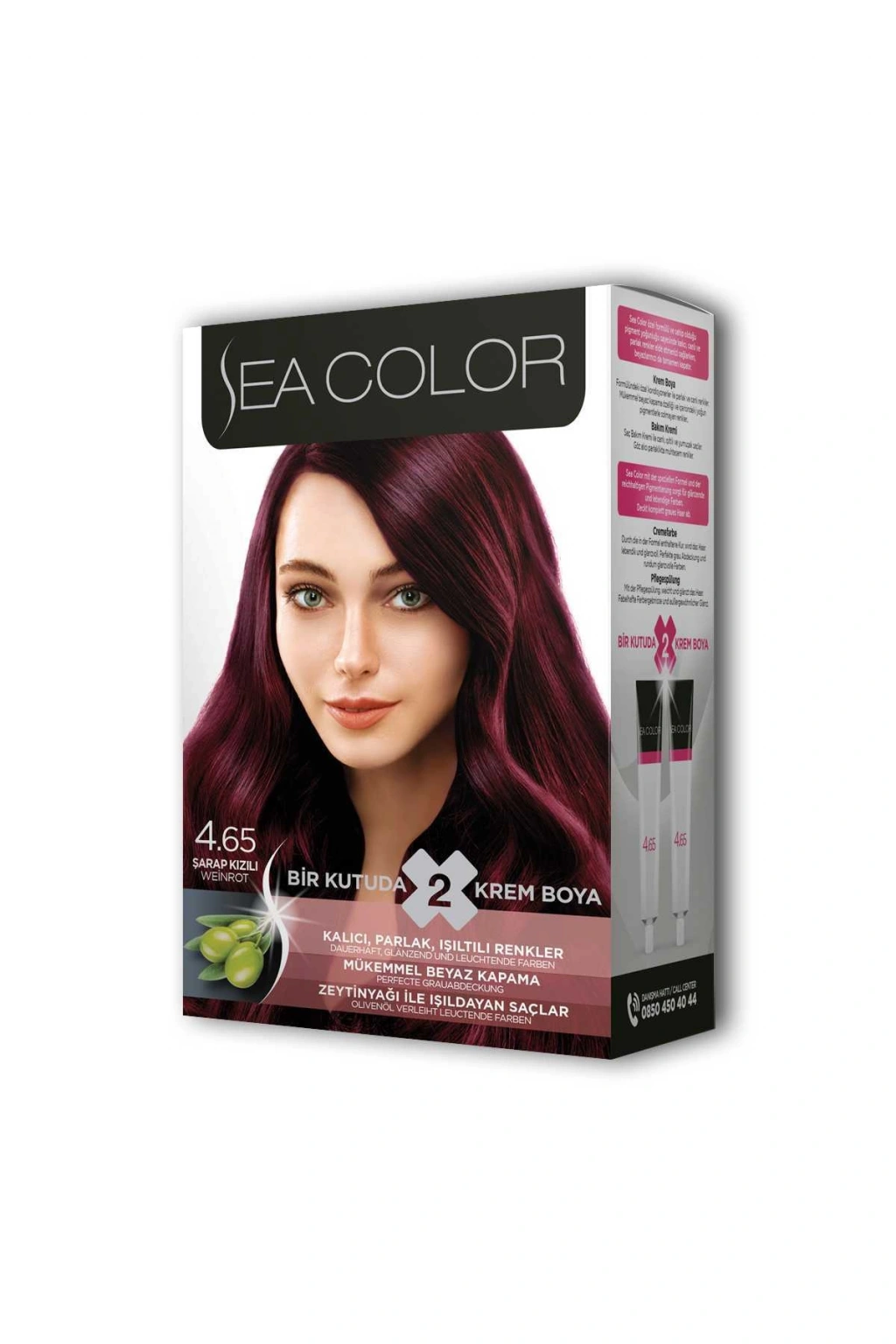 Sea Color 2 tüp Krem Saç Boyası Seti Şarap Kızılı No:4.65