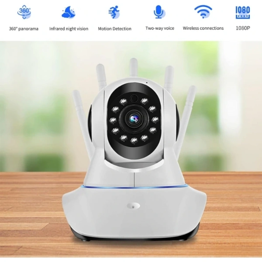 5 ANTENLİ BEBEK EV GÜVENLİK KAMERASIÜrün Özellikleri5 antenli bebek ve ev güvenlik kamerası, güçlü sinyal çekim kapasitesi sayesinde kesintisiz bağlantı ve geniş kapsama alanı sunar. 1080P yüksek çözünürlük ile net görüntüler elde edebilir, hem gündüz hem de gece güvenliği sağlayabilirsiniz. Gelişmiş kızılötesi gece görüş özelliği sayesinde düşük ışıkta dahi net görüntüleme yapar.360° dönebilen panoramik yapısı ile odanın her köşesini izleme imkânı verir. Hareket algılama sensörleri sayesinde olağan dışı durumlarda anında bildirim gönderir. Çift taraflı ses desteği ile bulunduğunuz yerden hem ses iletebilir hem de dinleme yapabilirsiniz. Kablosuz bağlantı özelliği sayesinde telefon veya tablet üzerinden uzaktan kontrol edilebilir.Bebek odası güvenliği, yaşlı veya evcil hayvan takibi ve ev içi güvenlik için ideal bir kullanım sağlar.Paket İçeriği1 adet 5 Antenli Bebek Ev Güvenlik Kamerası