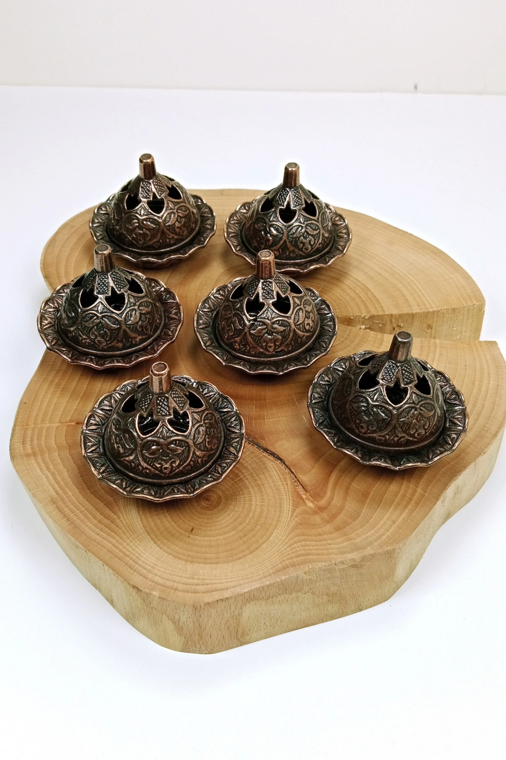 6 Lı Mini Eskitme Osmanlı Temalı Koyu Renk Lokumluk Sunum (599)