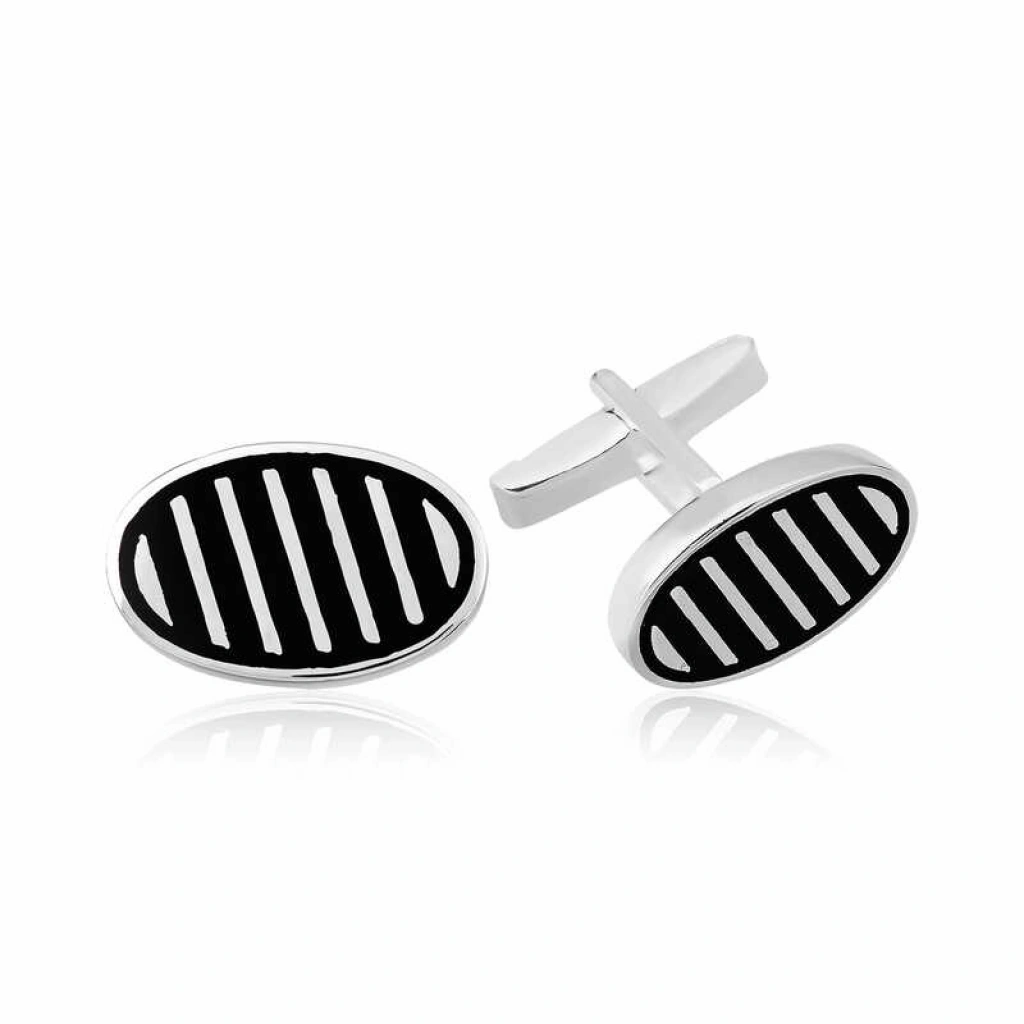 925 Ayar Gümüş Çapraz Çizgili Oval Kol Düğmesi T4660 (599)
