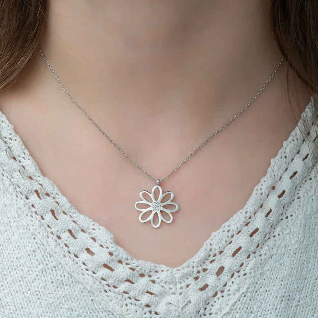 Gümüş Çiçek Bayan Kolye