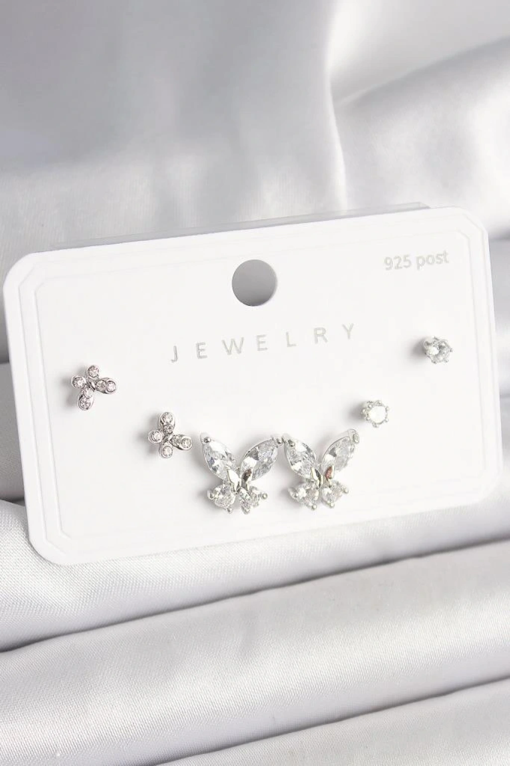 925 Ayar Gümüş Çivi Pirinç Zirkon Taşlı Kelebek Model Kadın Küpe Seti - BKP10402 (599599)