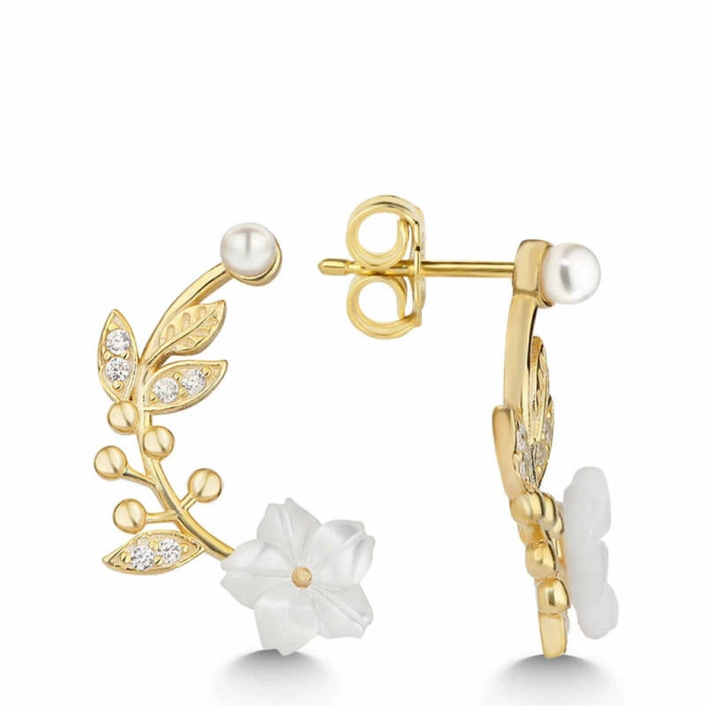 Gümüş Gold Sedef Çiçek Çivili Kadın Küpe
