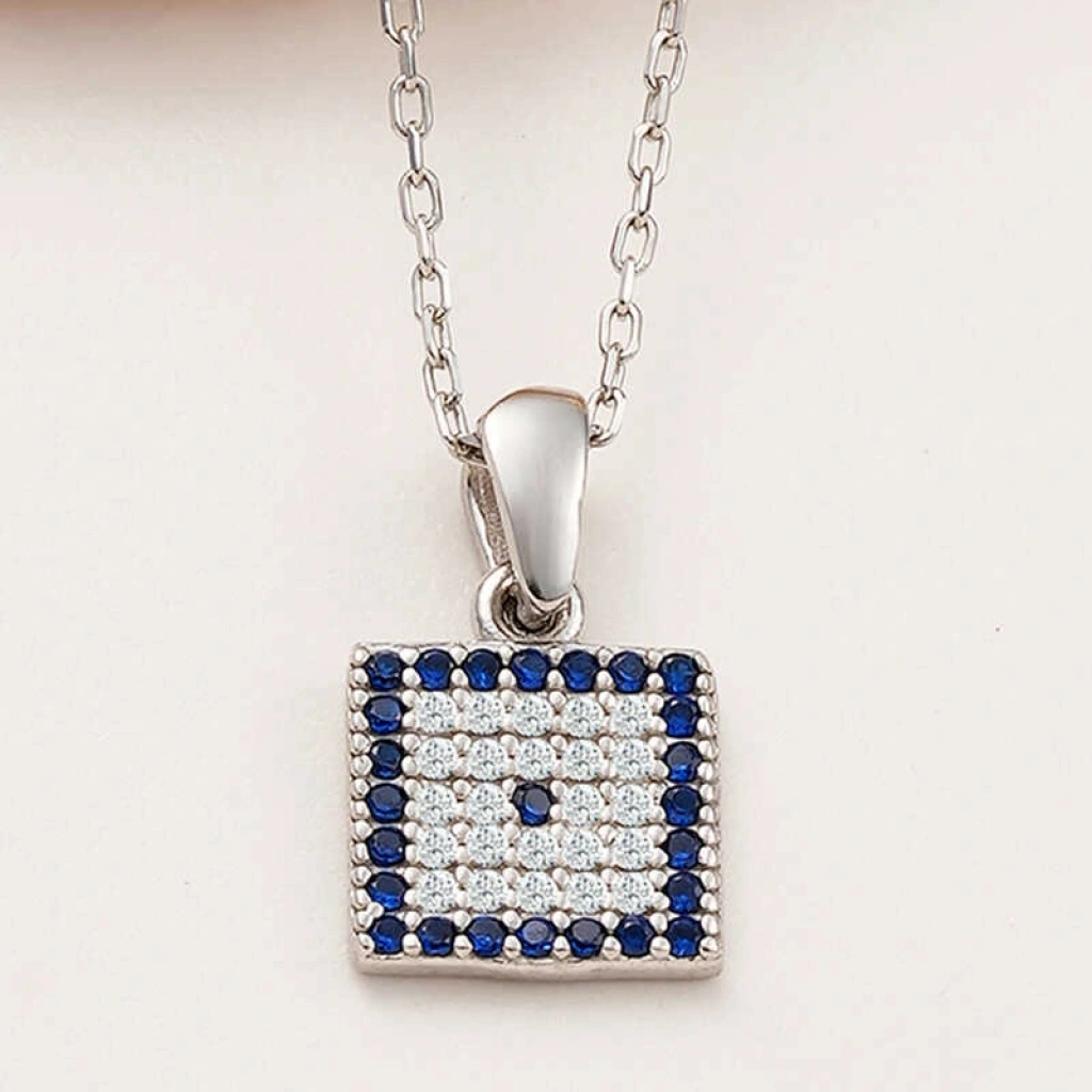 Gümüş Kare Nazar Kadın Kolye