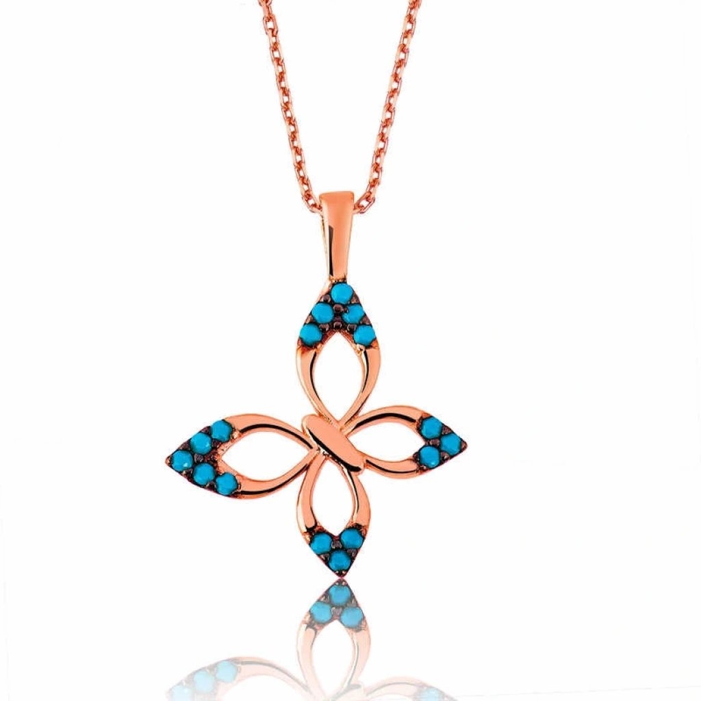 Özgürlüğü masumiyeti ve saflığı simgeleyen kelebekler, tertemiz sevginin ve aşkın ifadesidir. Bahar kelebekleri kolye anlam itibari ile aşkın küçük bir kıvılcım ile başladığı daha sonra büyük bir sabır ile büyüdüğü ve en sonunda ilan-ı aşkı ifade eder. Sizin olduğu kadar sevdiklerinizin de keyifle takacağı siyah kelebek kolye en güzel hediyelerden biri olacaktır. Kolye 925 ayar gümüşten imal edilmiştir. Gümüş üzerine rose altın kaplama yapılmıştır. Rose altın kaplama yapılan gümüş kolyeler parlaklığını uzun süre muhafaza eder, gümüşü pembe renge dönüştürür ve oksitlenmeyi geciktirir. Kolye üzerinde bulunan mavi taşlar zirkondur. Gümüş olan zincir boyu ortalama 45 cm'dir. Tüm gümüş kolyelerde olduğu gibi gümüş mavi kelebek kolye de el emeği ile üretilmiştir. Gümüş ve değerli taşlar nedeniyle belirtilen ortalama ürün ağırlığında ± %10 sapma olabilmektedir.