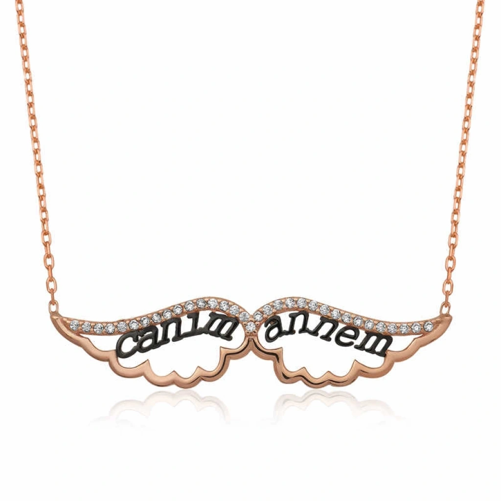Gümüş Melek Canım Annem Kolye