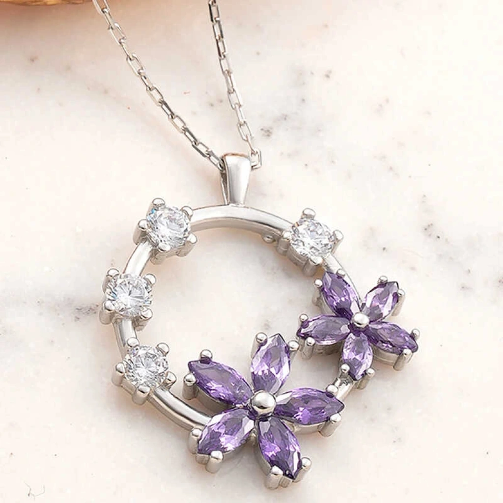 Sevdiklerinize duygularınızı ifade etmenin yolu neden çiçek desenli zarif bir kolye olmasın? Özel zamanlarda O’na gönderebileceğiniz, hediye seçenekleri arasında yer alan bu şık kolye sevdiklerinizi sevindirmenin en güzel yolları arasında yer almaktadır. En kaliteli, en parlak, en ışıltılı taşlarla hazırlanmış gümüş mor çiçek kadın kolye sevgisini bir kez daha anlatmak isteyenleri, sen bir çiçeksin demek isteyenleri bekliyor. Bu özel tasarım gümüş mor çiçek kadın kolye 925 ayar gümüşten imal edilmiştir. Gümüş üzerine rodyum kaplama yapılmıştır. Rodyum kaplama yapılan gümüş kadın kolye modelleri parlaklığını uzun süre muhafaza eder ve oksitlenmesi gecikir. Gümüş olan zincir boyu ortalama 45 cm'dir. Tüm kadın gümüş kolye modellerinde olduğu gibi gümüş mor çiçek kadın kolye de el emeği ile üretilmiştir. Gümüş ve değerli taşlar nedeniyle belirtilen ürün ağırlığında ± %10 sapma olabilmektedir.