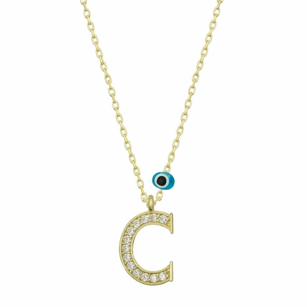 Gümüş Nazar Gold C Harfi Kadın Kolye