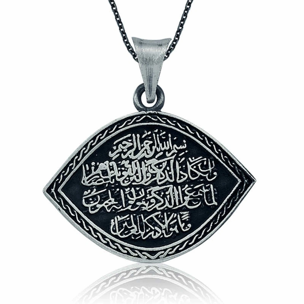 Nazar bakış demektir ve her canlıya nazar değebilmektedir. Bu nazar hastalığından korunmak, şifa bulmak için nazar duası okunur. Bu maneviyatı yüksek kolye; doğum günü hediyesi, sevgililer günü hediyesi veya annelere hediye olarak özel günlerde tercih edilebilecek mükemmel bir seçenektir. Nazar duası kolye modeli 925 ayar gümüşten imal edilmiştir. Gümüş üzerine oksit kaplama yapılmıştır. Oksit kaplama yapılan gümüş kolyeler parlaklığını uzun süre muhafaza eder ve kararması gecikir. Tüm gümüş kolyelerde olduğu gibi gümüş nazar duası kolye de el emeği ile üretilmiştir. Gümüş ve değerli taşlar nedeniyle belirtilen ortalama ürün ağırlığında ± %10 sapma olabilmektedir.