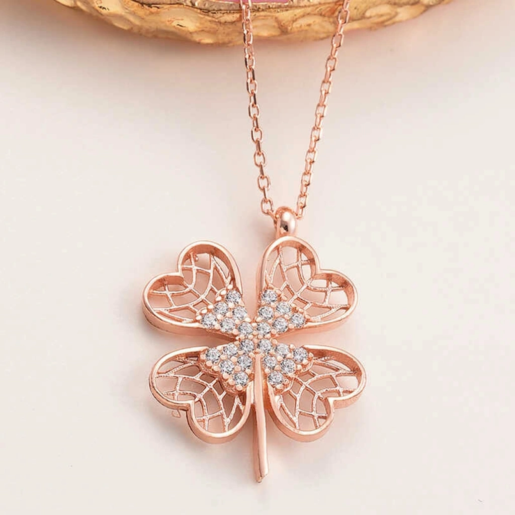 Gümüş Rose Dört Yapraklı Yonca Kadın Kolye