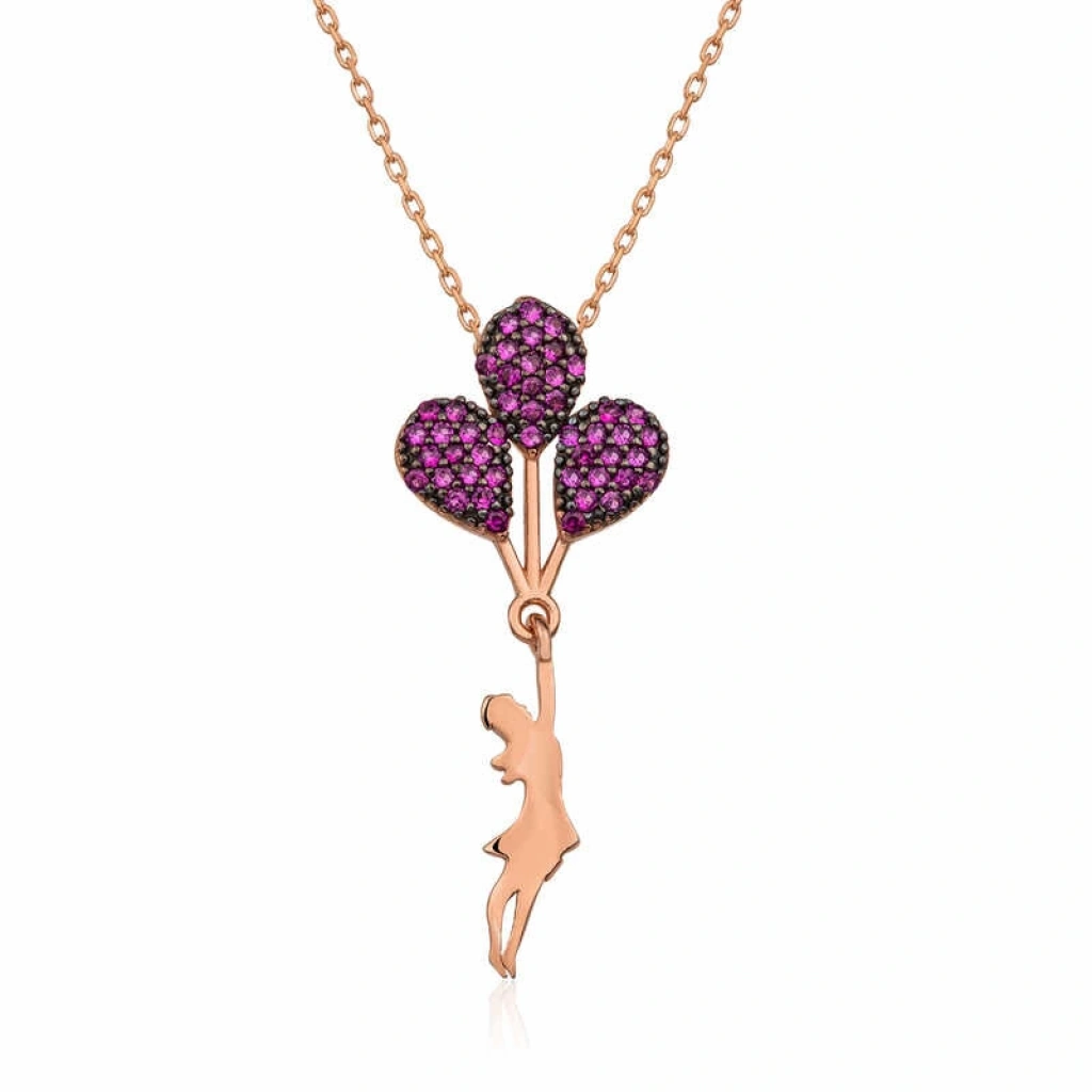 Balonlar; bizleri her ne kadar çocukluğumuza götürse de, yaş fark etmeksizin her an yüzümüzde tebessüme neden olmaktadır. Özgürlüğünün ipi ellerimizin ucunda olan balon, güzel günleri anımsatan içimizde bir yerlerde duran küçük kızı ortaya çıkarmaktadır. Bu harika tasarım kırmızı balon tutan kız kolye; doğum günü hediyesi, sevgililer günü hediyesi veya özel günlerde tercih edilebilecek mükemmel bir seçenektir. Bu şık tasarım 925 ayar gümüşten imal edilmiştir. Bu kolye üzerine rose kaplama yapılmıştır. Rose kaplama yapılan kolyeler parlaklığını uzun süre muhafaza eder, gümüş rengini pembe renge çevirir. Tüm gümüş kolyelerde olduğu gibi kırmızı balonlu kız kolye de el emeği ile üretilmiştir. Gümüş ve değerli taşlar nedeniyle belirtilen ürün ağırlığında ± %10 sapma olabilmektedir.