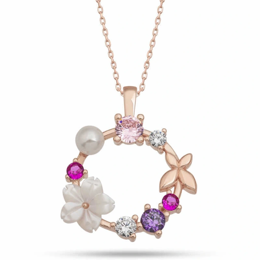 Gümüş Rose Manolya Çiçeği Kelebek Kadın Kolye