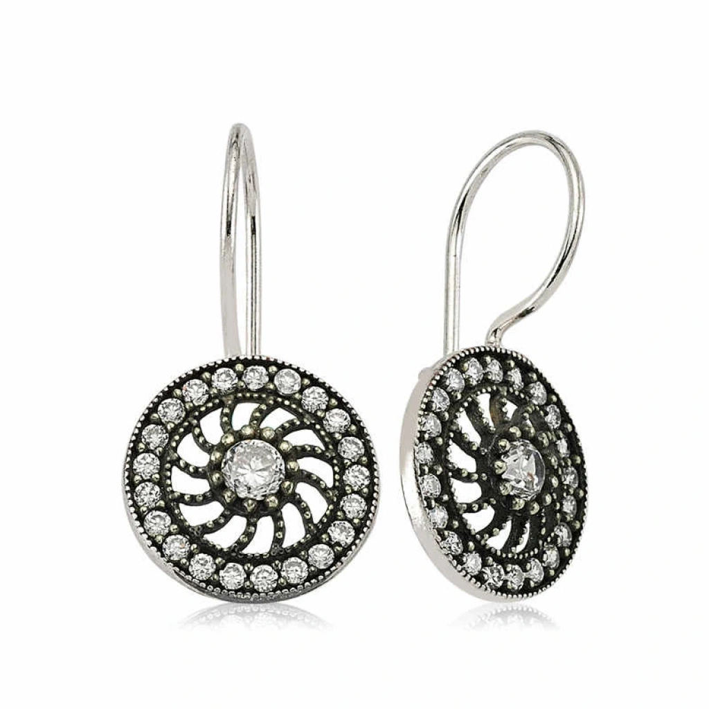 Gümüş Taşlı Sallantılı Çiçek Küpe