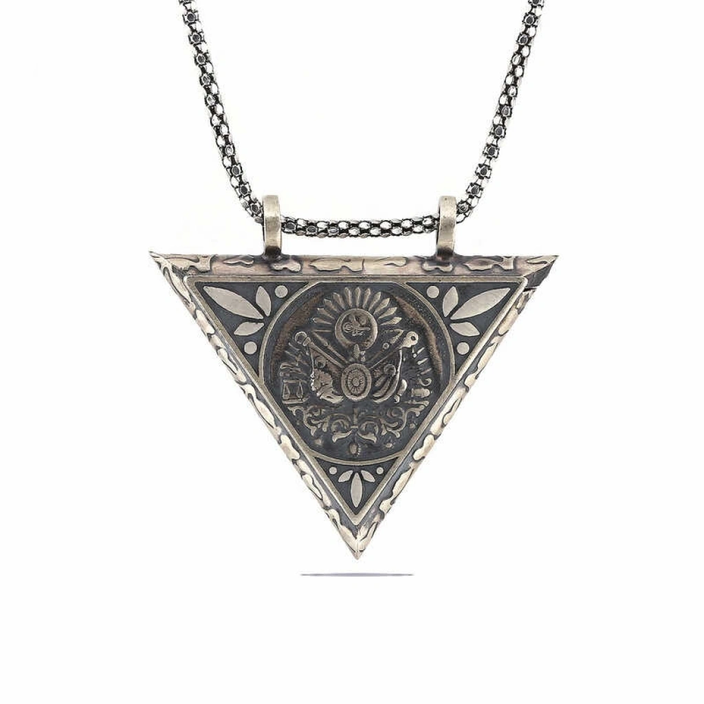 Gümüş Üçgen İçi Açılabilen Osmanlı Arma Muskalık Kolye