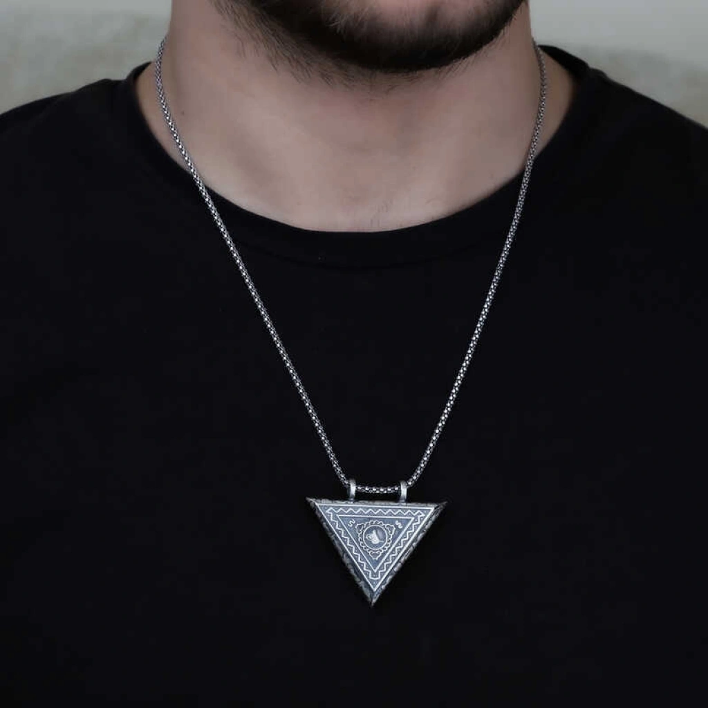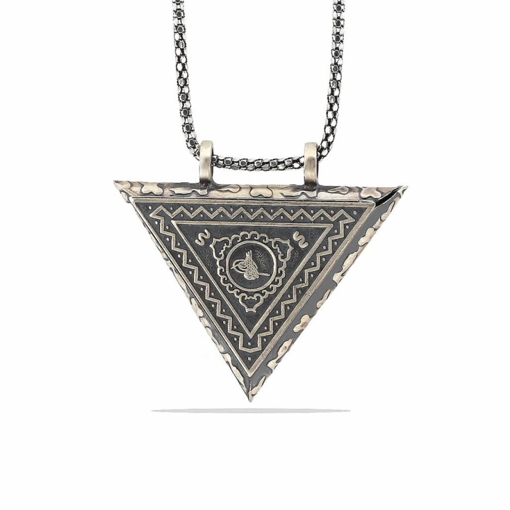 925 Ayar Gümüş Üçgen İçi Açılabilen Tuğra Muskalık Gümüş Kolye T6008 (599)