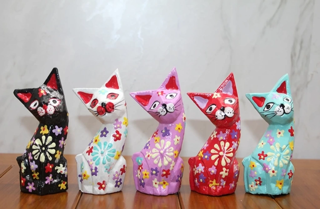 Ahşap 5'Li Kedi Seti Polos:7 Ürün Ölçüleri 10 Cm