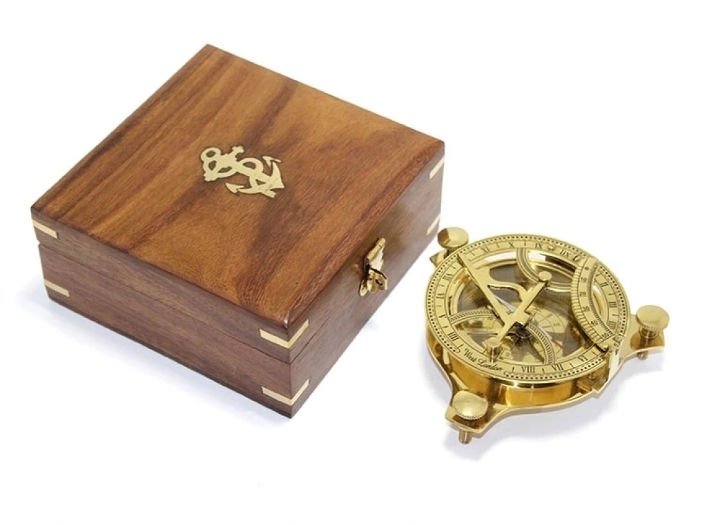 • Ahşap Kutulu El Yapımı Pirinç Güneş Saati Ve Pusula 15640