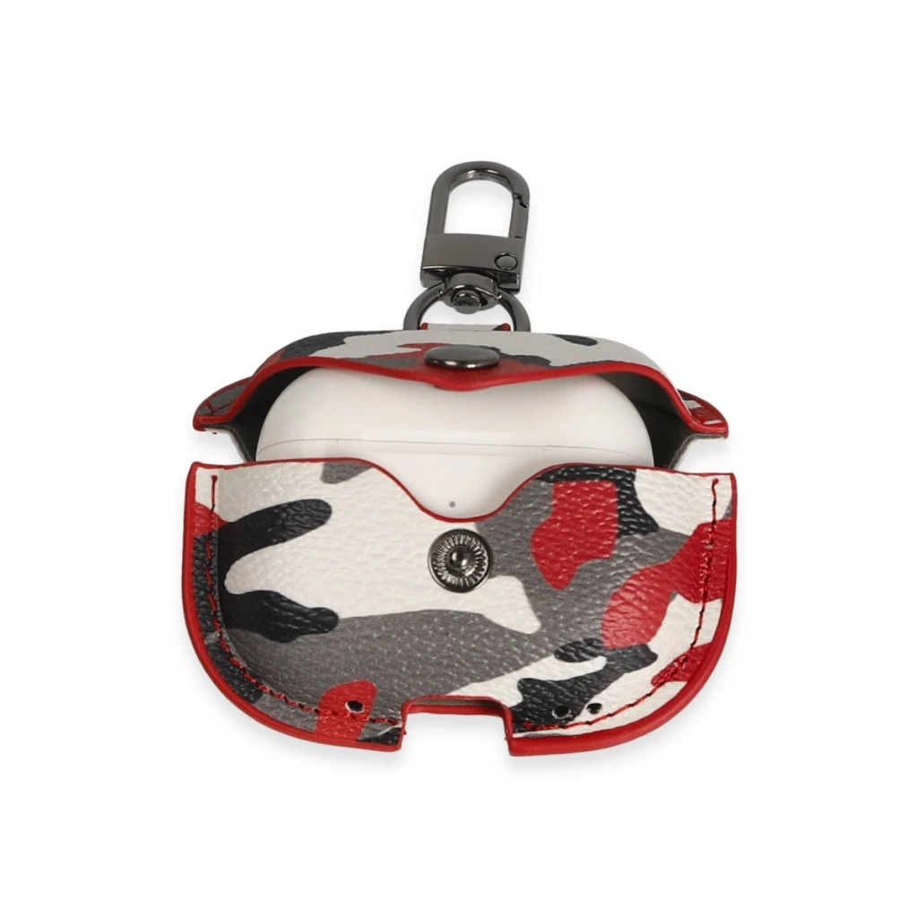 • Airpods Pro 2 (2.nesil) Çanta Kamuflaj Deri Kılıf - Kırmızı