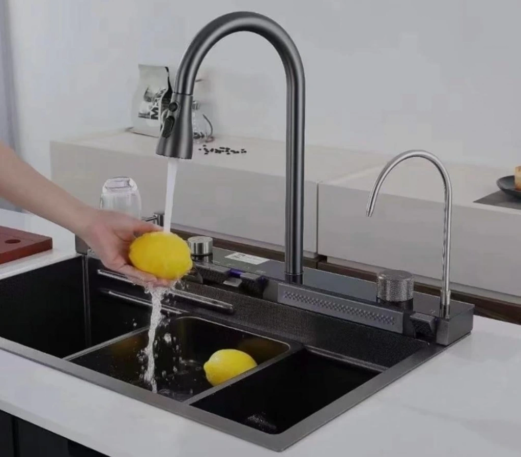 Mutfakta hem teknoloji hem şıklık arayanlara özel, modern ve işlevsel bir çözüm: Akıllı Dijital Şelale Eviye Seti.