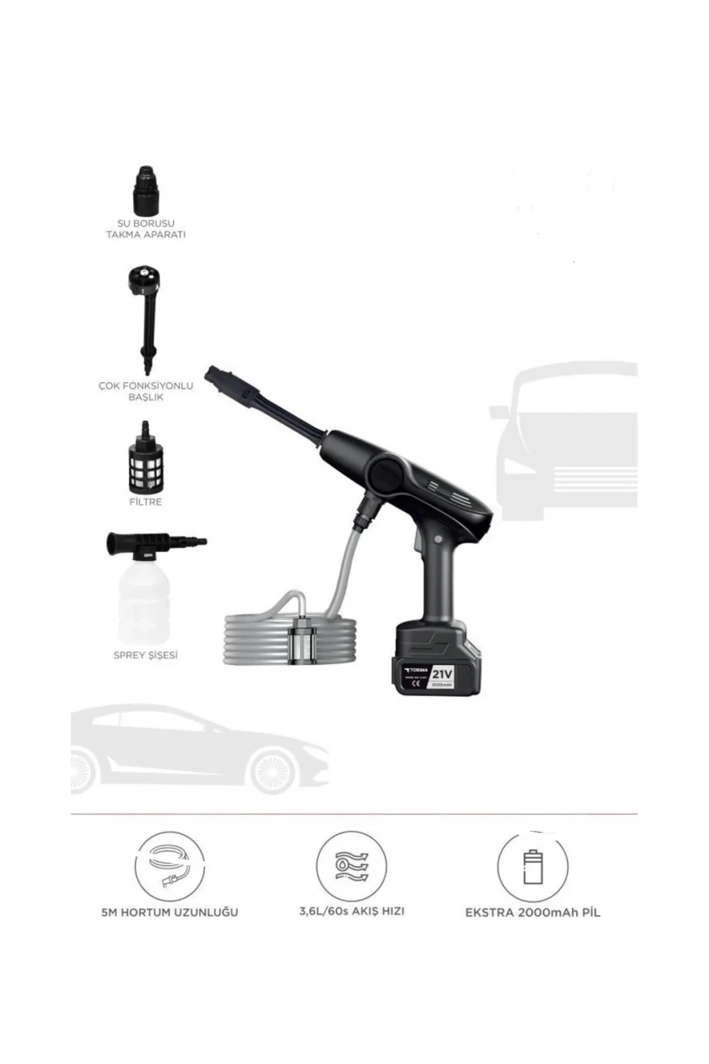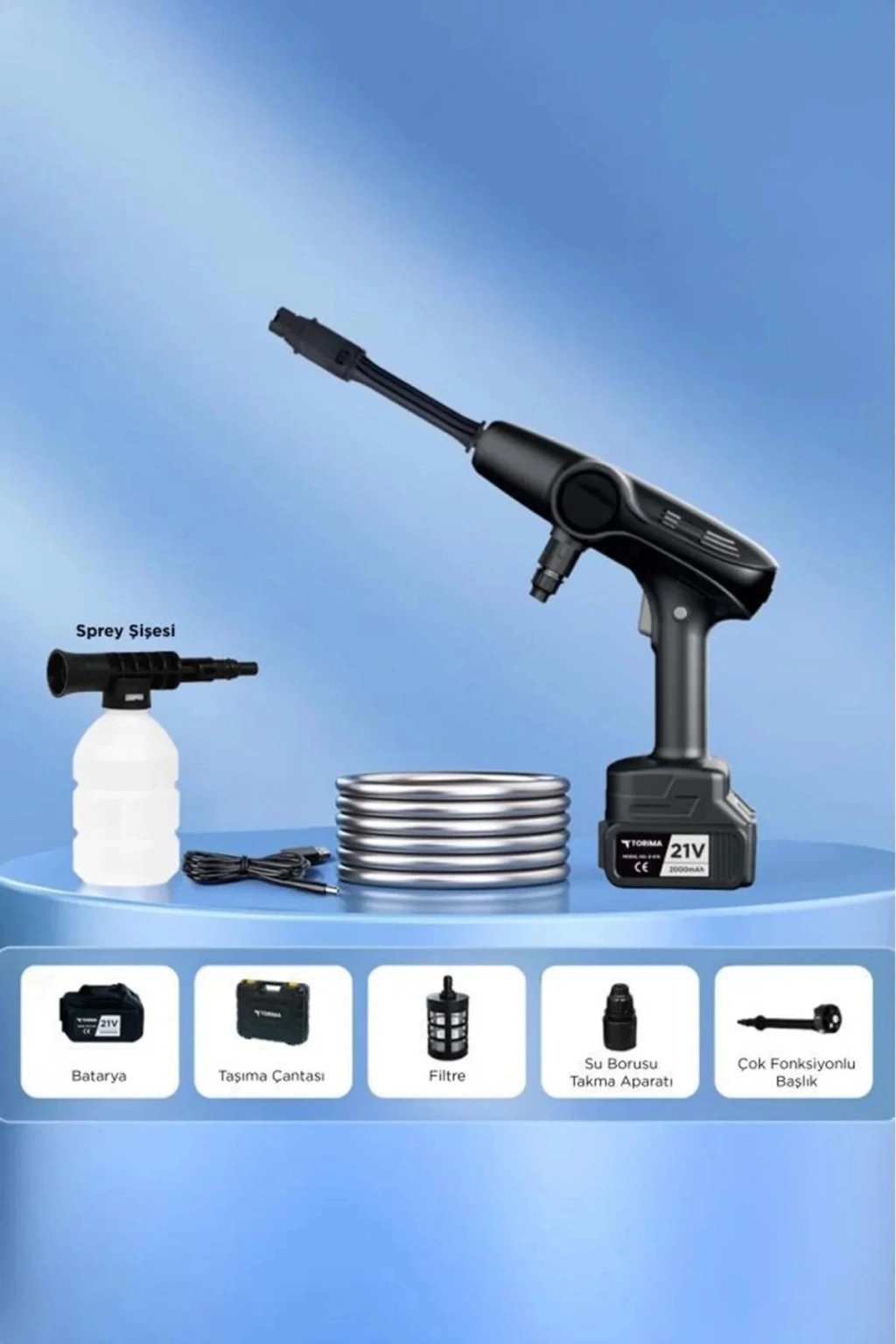 • Akülü Şarjlı Yüksek Basınçlı Oto Araba Bahçe Yıkama,temizleme Su Sı
