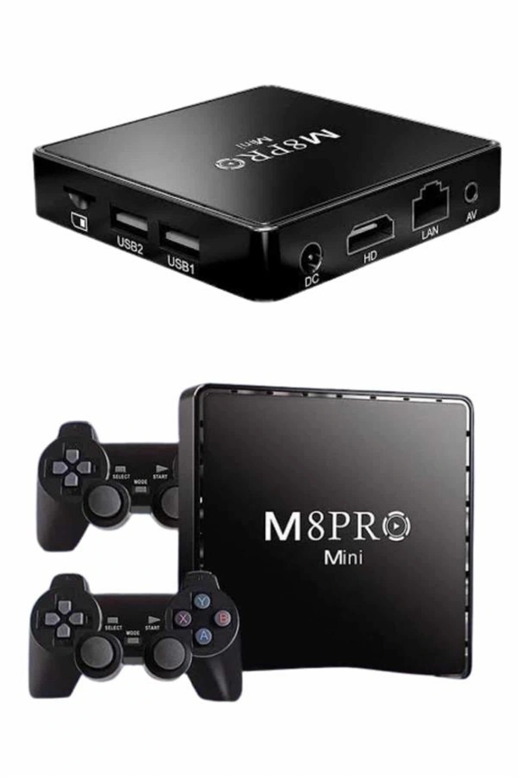 M8pro Android TV Box ve Retro Oyun Konsolu – Tek Cihaz, Çift EğlenceM8pro Android TV Box, yüksek performanslı Android işletim sistemiyle ev eğlencesini yepyeni bir boyuta taşıyor. 10K Ultra HD görüntü kalitesi, HDR desteği ve 2GB RAM ile hem akıcı medya deneyimi hem de hızlı sistem tepkileri sunar. Cihaz içerisinde yer alan Google Asistan ve Chromecast desteği sayesinde sesli komutlarla cihazı kontrol edebilir, mobil cihazınızdaki içerikleri TV'ye yansıtabilirsiniz. Google Play Store'dan uygulamalar indirerek dizi-film platformlarından haber uygulamalarına kadar geniş bir içerik yelpazesiyle kullanım özgürlüğü sağlarsınız.Retro Oyun Konsolu Özelliği ile Nostaljiye YolculukM8pro yalnızca bir medya cihazı değil, aynı zamanda zengin bir oyun dünyasına açılan bir kapıdır. İçerisinde 14 farklı emülatör (PS1, PSP, NES, SNES, N64, NEOGEO, GBA, vb.) yüklüdür ve 10000 adet retro oyun dahili olarak gelmektedir. Oyunlar, 64GB hafıza kartında yer almakta ve kullanıcılar dilerse sisteme zarar vermeden yeni oyunlar ekleyebilmektedir. Tek başınıza nostaljik anlar yaşamak ya da arkadaşlarınızla çok oyunculu eğlenceli vakit geçirmek için ideal bir sistemdir. 3D oyun desteği sayesinde grafik kalitesi beklentilerinizi de karşılar.Kompakt Tasarım, Geniş Kullanım AlanıKompakt yapısı sayesinde kolay taşınabilir olan bu cihaz, sadece televizyon başında değil; iş seyahatlerinde, tatillerde veya misafirliklerde bile eğlenceyi yanınızda taşımanıza imkân verir. Kablo karmaşası olmadan kurulumu kolaydır ve HDMI bağlantısıyla hemen kullanılabilir. FM radyo, USB desteği, medya oynatıcı gibi özellikleriyle sadece oyun veya dizi izleme aracı değil, tam anlamıyla evinizin dijital eğlence merkezi hâline gelir. M8pro, günlük medya ihtiyaçlarınızdan eğlence dolu oyun seanslarına kadar her anınıza eşlik eder.