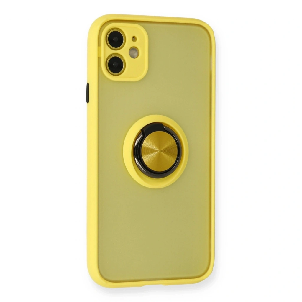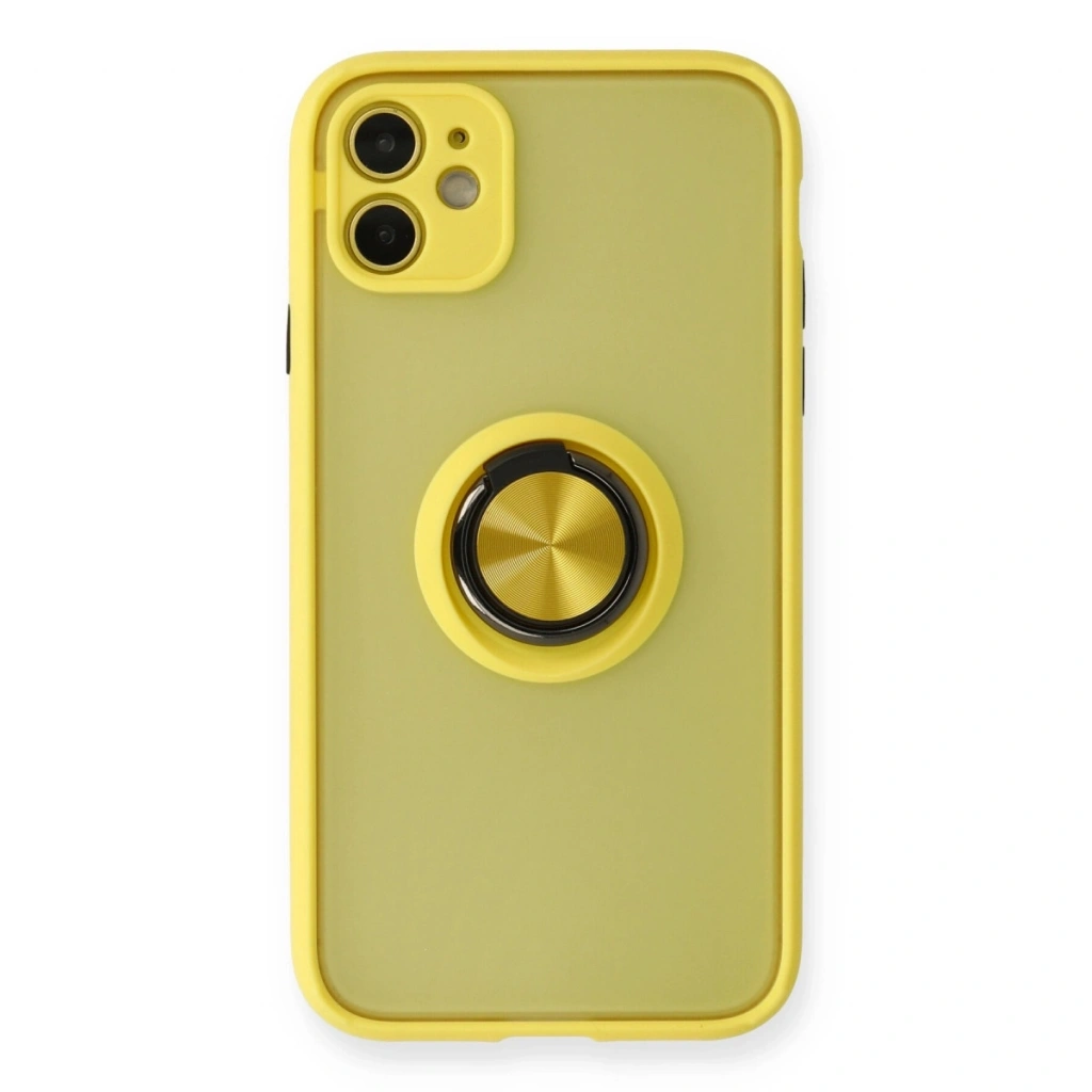 • Apple İphone 11 Kılıf Montreal Yüzüklü Silikon Kapak - Sarı