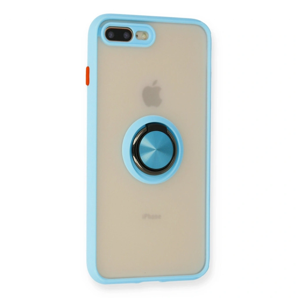 • Apple İphone 7 Plus Kılıf Montreal Yüzüklü Silikon Kapak - Buz Mavi