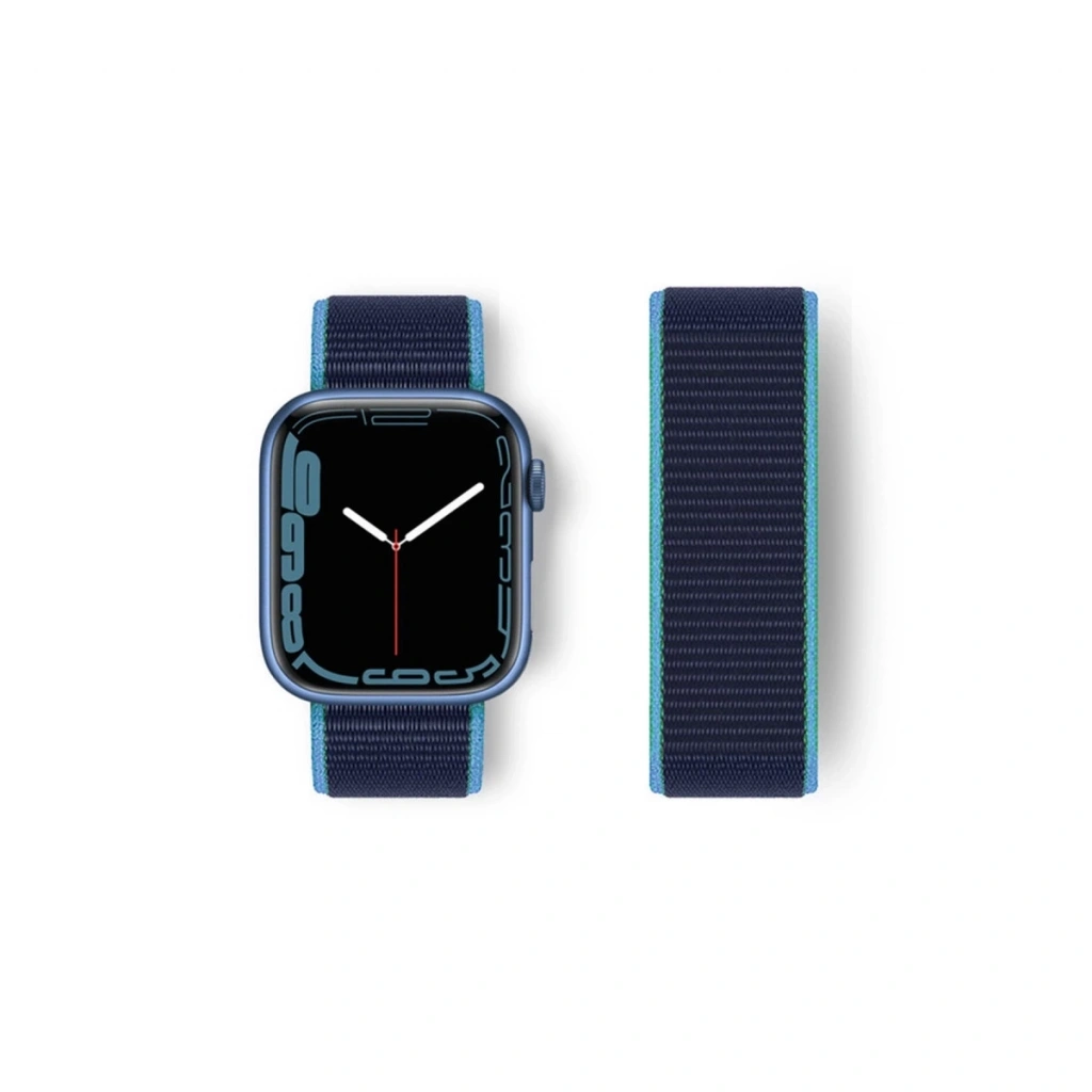 Apple Watch 38mm Hasırlı Cırtcırtlı Kordon - Mavi-lacivert