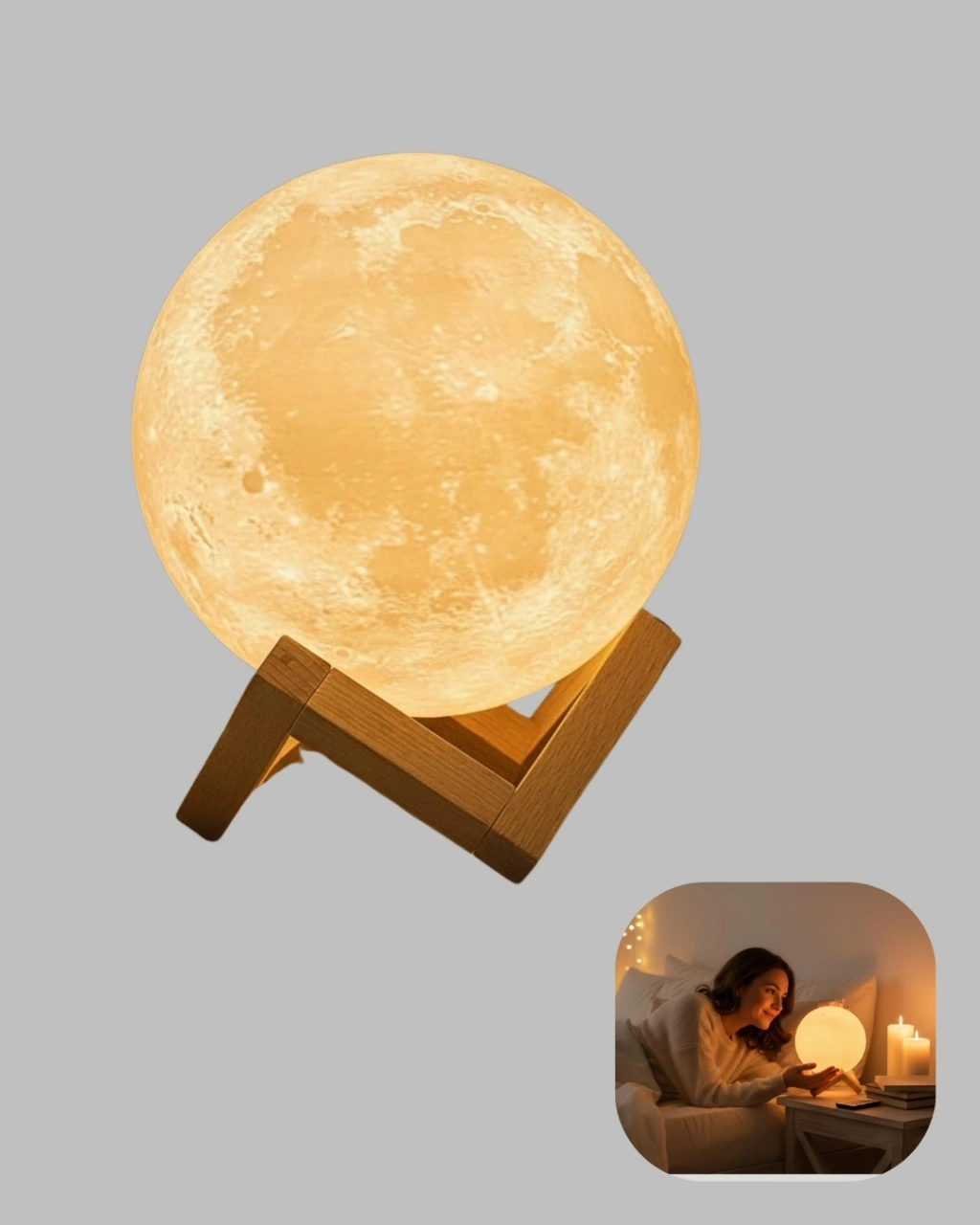 Evinize gökyüzünün huzurunu taşıyın! 16 renkli 3D baskılı ay lambası, gerçek ay yüzeyinden esinlenilerek tasarlanmış hiper gerçekçi yüzeyiyle hem dekoratif hem de fonksiyonel bir aydınlatma çözümüdür. NASA verilerine dayalı 3D baskı teknolojisi, ayın tüm krater detaylarını birebir yansıtarak benzersiz bir görsel şölen sunar.Lambanın 16 farklı renk seçeneği ve 4 özel ışık modu (, solma, geçiş, sabit) bulunur. Dilediğiniz renkte romantik bir atmosfer yaratabilir veya RGB geçiş moduyla odanıza canlılık katabilirsiniz. 9 kademeli parlaklık ayarı, hem gece lambası olarak hem de ambiyans ışığı olarak kullanımı mümkün kılar.Şık ahşap standı, doğal dokusuyla sıcak bir görünüm sunarken, modern dekorlarla mükemmel uyum sağlar.Şarjlı bataryası, 8 saate kadar kesintisiz kullanım sağlar. Type-C şarj girişi ile sadece 2 saatte tam dolum yapılabilir. Hafif ve taşınabilir yapısı sayesinde ister yatak odasında ister salonda ya da çocuk odasında rahatlıkla kullanılabilir.Romantik bir akşam, huzurlu bir uyku ortamı veya şık bir hediye için mükemmel bir tercih!