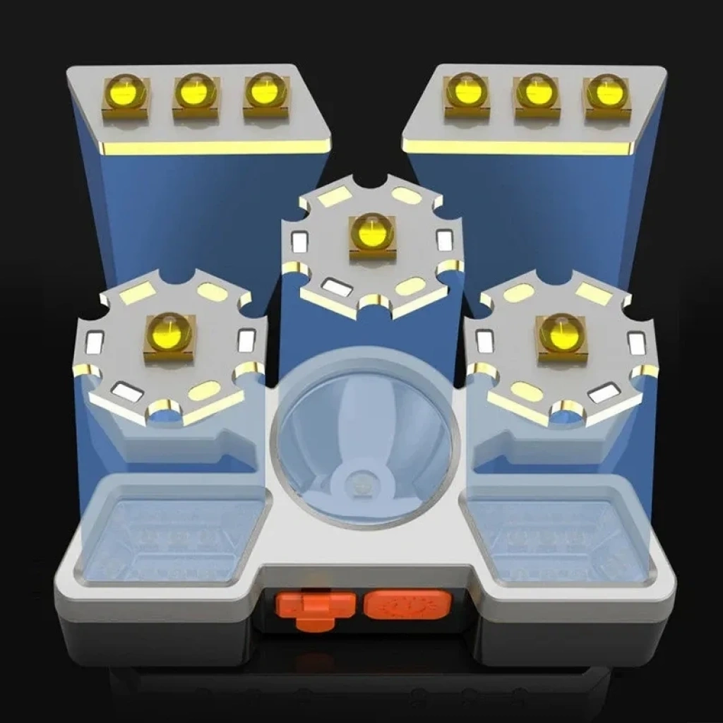 Ultra Güçlü Şarjlı 5 Led Kafa Feneri Avcı Balıkçı Kamp El Feneri Süper Kafa Lambası 4 Modlu Cob Led