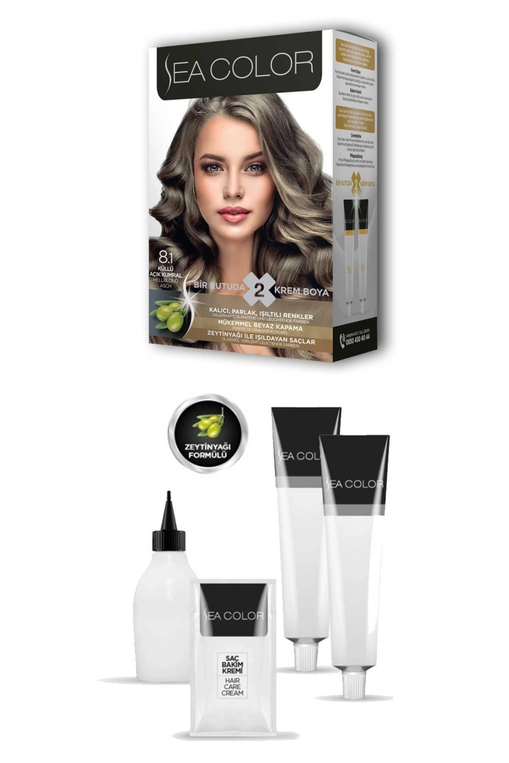 Sea Color 2X2 tüp Krem Saç Boyası Seti Küllü Açık Kumral No:8.1