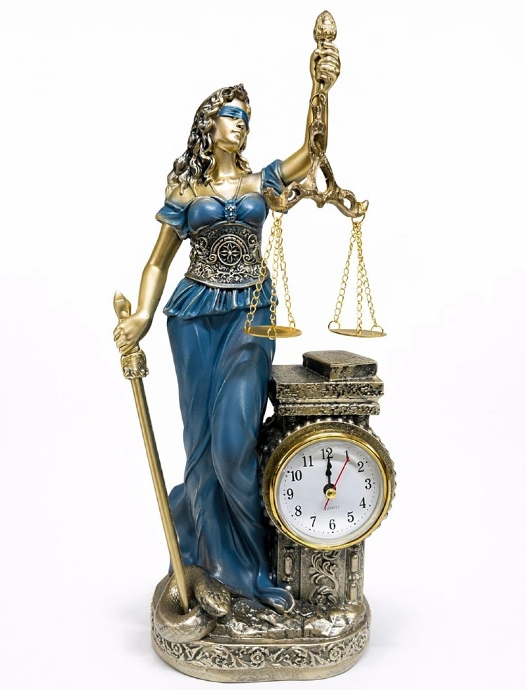 • 35x14 cm Polyester Saatli Adalet Figürü