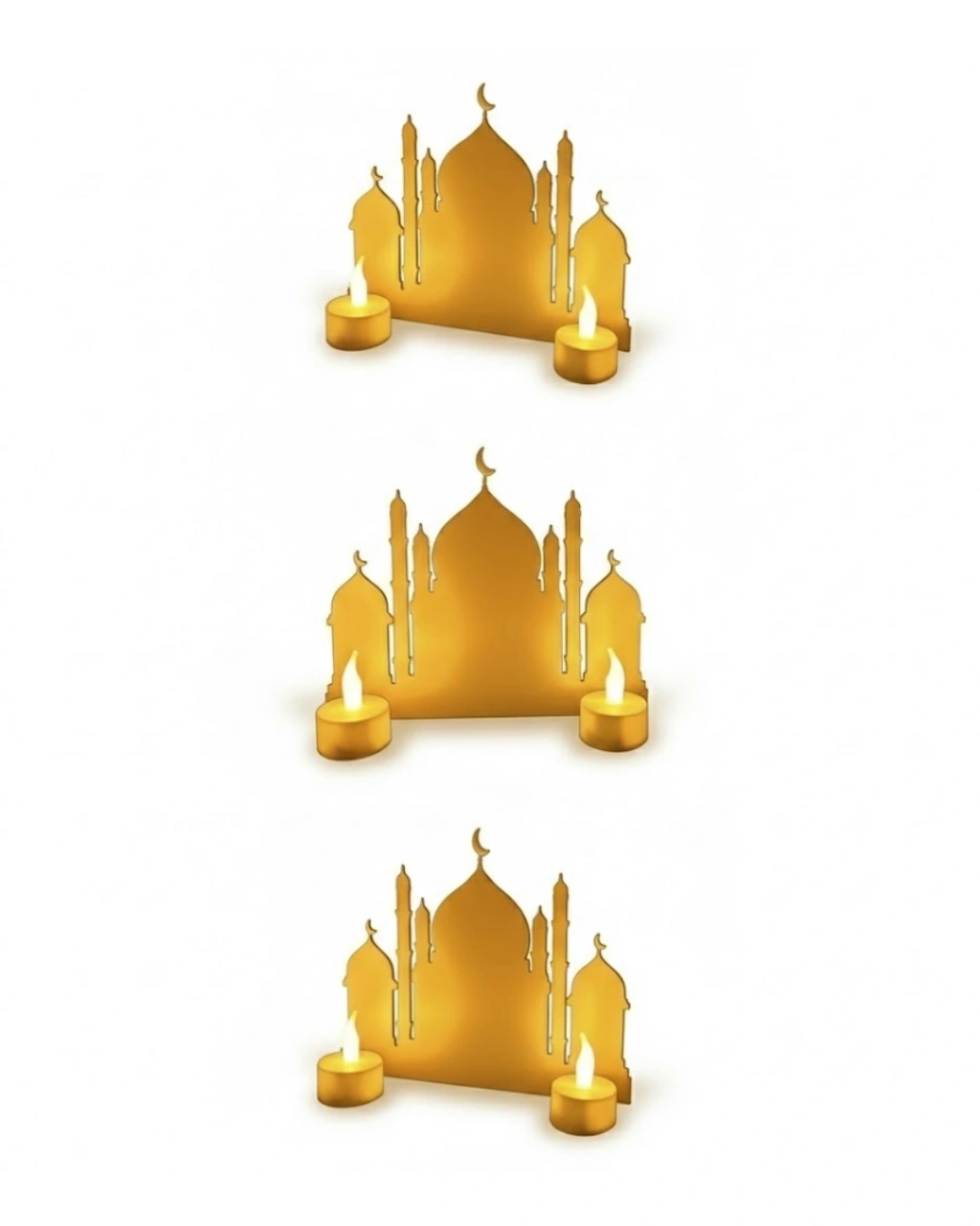 3D Işıklı Cami Siluet Dekor, Ramazan ve bayram dönemlerinde konsept dekorasyon oluşturmak isteyenler için tasarlanmıştır.2 adet LED pilli mum hediyesi sayesinde ürünü ekstra aksesuar almadan kullanabilirsiniz. Sıcak sarı ışık efekti ortamda huzurlu bir atmosfer oluşturur.Dayanıklı ve hafif yapısı sayesinde kolay taşınabilir ve farklı alanlarda konumlandırılabilir.