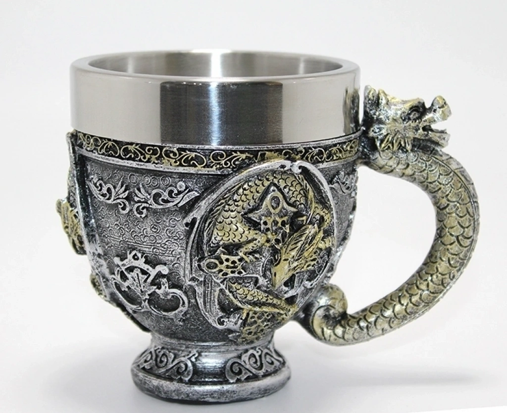 3d Ejderha Figürlü Kabartmalı Paslanmaz Çelik Kupa Bardak Alk4481