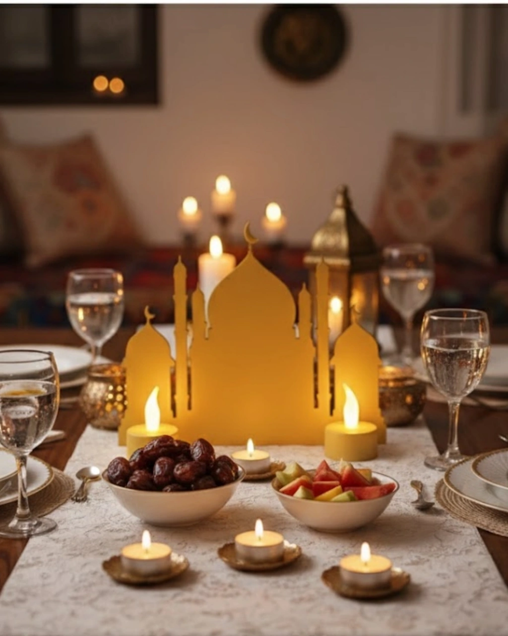 3d İki Mumlu Cami Dekor 2 Pilli Led Mum Hediyeli Masa Üstü Süs