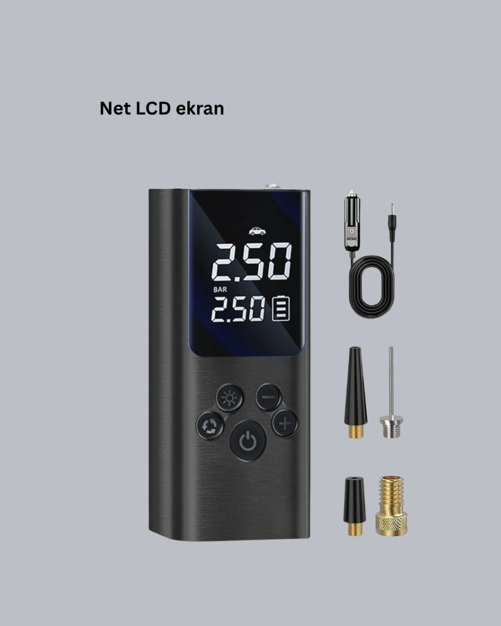 Kompakt dijital hava pompası, günlük ve seyahat kullanımına uygun şekilde tasarlanmıştır. Birden fazla valf adaptörü sayesinde farklı lastik ve spor ekipmanları ile uyum sağlar.Dijital LCD ekran, gerçek zamanlı basınç değerlerini göstererek hassas şişirme yapılmasına yardımcı olur. Otomatik kapanma fonksiyonu ile kullanım güvenliği artırılmıştır.USB şarj özelliği sayesinde kablosuz ve taşınabilir kullanım sunar. Küçük boyutu ile çanta veya araç içinde rahatlıkla taşınabilir.Entegre LED ışık, karanlık ortamlarda kullanım kolaylığı sağlar. Günlük ihtiyaçlar ve acil durumlar için ideal bir dijital lastik pompasıdır.