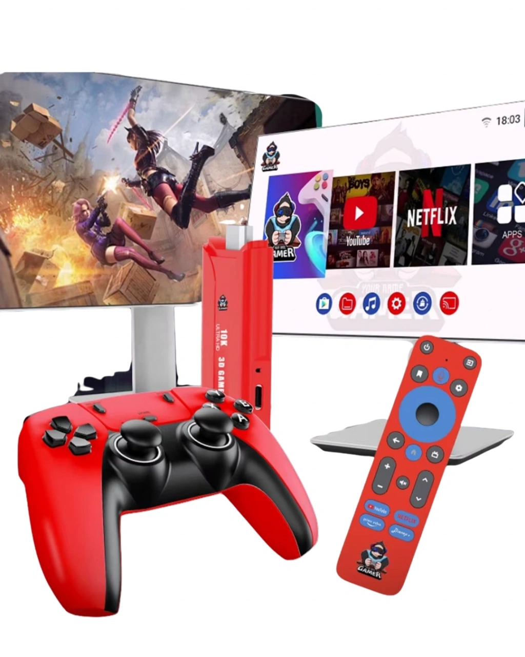 Android Game Stick 10K HD oyun konsolu, televizyonunuzu güçlü bir eğlence merkezine dönüştürür. 10K HD çözünürlük desteği sayesinde oyunlarınızı keskin, net ve yüksek görüntü kalitesiyle oynayabilirsiniz. 3D oyun desteği, grafik detaylarını daha gerçekçi hale getirerek oyun deneyimini üst seviyeye taşır. Retro tasarımı ile nostaljik oyun keyfini modern teknolojiyle birleştirir.64GB dahili depolama alanı sayesinde geniş bir oyun arşivi oluşturabilir, favori oyunlarınızı kolayca saklayabilirsiniz. Çift kişilik oyun desteği ile iki adet kablosuz kumanda üzerinden arkadaşlarınızla veya ailenizle aynı anda oyun oynayabilirsiniz.5G WiFi bağlantı desteği sayesinde internet çekim gücü oldukça yüksektir. Oyunlar arası geçiş son derece hızlıdır. Akıcı performansı sayesinde donma, kasma veya takılma yapmaz.YouTube, Netflix, MYTV, Magis gibi popüler uygulamalar hazır yüklü olarak gelir. Böylece yalnızca oyun değil, film ve dizi keyfi de yaşayabilirsiniz.Kutu içeriği:• 1 Adet Android Game Stick• 2 Adet Oyun Kumandası• 1 Adet TV Kumandası• 1 Adet Power ve Kumanda Algılayıcısı