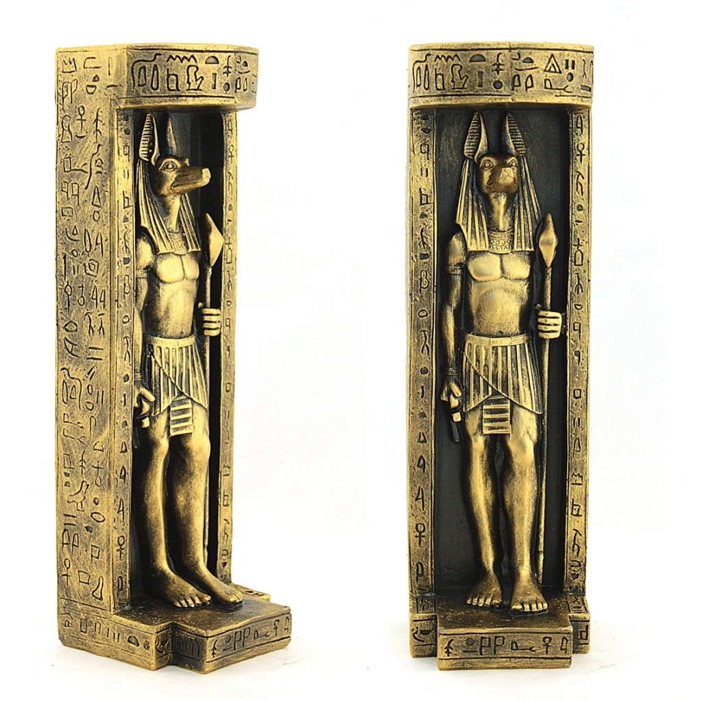 ANUBİS FIGÜRLÜ MUMLUKÜrün ÖzellikleriBu mumluk, polyester ve taş tozundan yapılmış olup, antik Mısır'ın en bilinen tanrılarından biri olan Anubis figürünü temsil etmektedir. 19x6 cm boyutlarındaki bu şık mumluk, evinize mistik bir hava katacak şekilde tasarlanmıştır. Antik Mısır kültürüne olan ilginizi yansıtan bu dekoratif ürün, masalarınıza zarif bir dokunuş sağlar. Hem işlevsel hem de estetik açıdan dikkat çekicidir.Paket İçeriği1 Adet Anubis Figürlü Mumluk