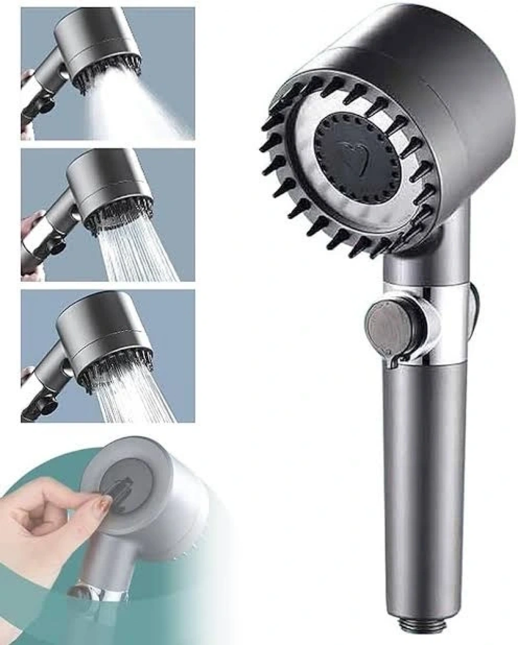 FİLTRELİ DUŞ BAŞLIĞI 3 MODBu duş başlığı, 3 farklı modda çalışabilir: yağmur, püskürtme ve tazyikli akış. Silikon çıkıntıları sayesinde masaj özelliği sunar. Üzerindeki stop tuşuyla suyun akışını durdurabilir ve tekrar başlatabilirsiniz, ancak duşun tamamlanmasının ardından musluğu manuel olarak kapatmanız gerekiyor.Ayrıca, başlığın tasarımı sayesinde masaj yapabilmeniz için ucundaki silikon çıkıntıları bulunmaktadır. Bu, duş deneyiminizi daha rahatlatıcı hale getirir. Modları arasında geçiş yapmak da oldukça kolaydır, istediğiniz akış şeklini seçebilirsiniz. Duşunuzun süresini ve su kullanımını kontrol etmek için stop tuşu pratik bir özelliktir, ancak suyun tamamen kesilmesi için musluğu kapatmanız gerektiğini unutmamanız önemlidir.Paket İçeriği1 adet filtreli duş başlığı 3 mod