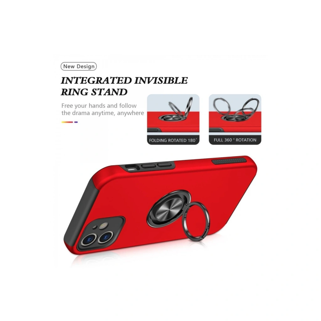 İphone 12 Kılıf Elit Yüzüklü Kapak - Kırmızı