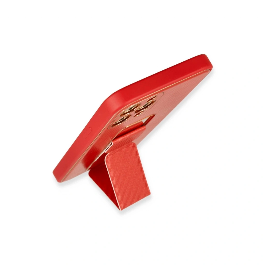 • İphone 12 Pro Kılıf Coco Karbon Standlı Kapak - Kırmızı