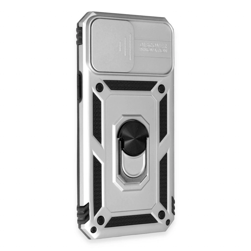 İphone 12 Pro Max Kılıf Pars Lens Yüzüklü Silikon - Gümüş