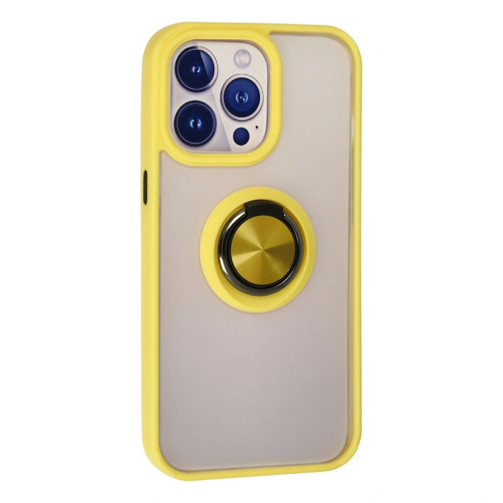 • İphone 15 Pro Max Kılıf Montreal Yüzüklü Silikon Kapak - Sarı