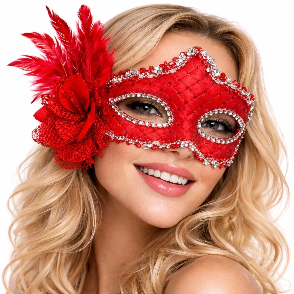 • Kırmızı Tüylü Venedik Lüks Balo Maskesi