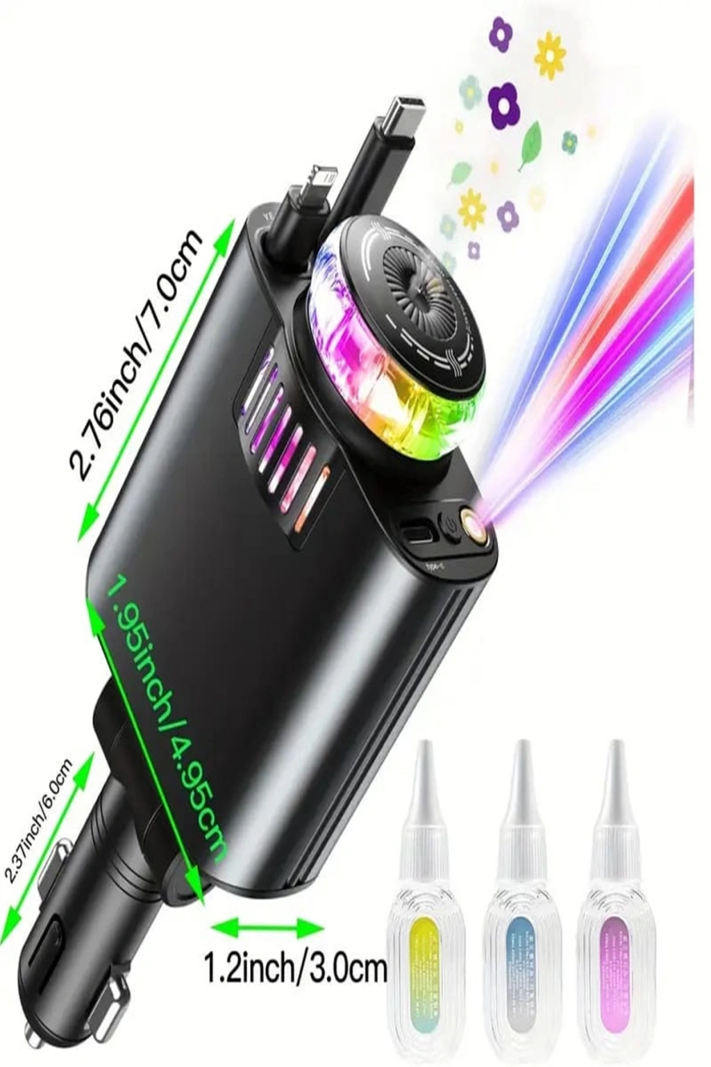 Led Işık Aydınlatmalı 45w Hava Nemlendirici 5’1 Arada Şarj Cihazı Araç İçi Çakmaklık Şarj Aleti