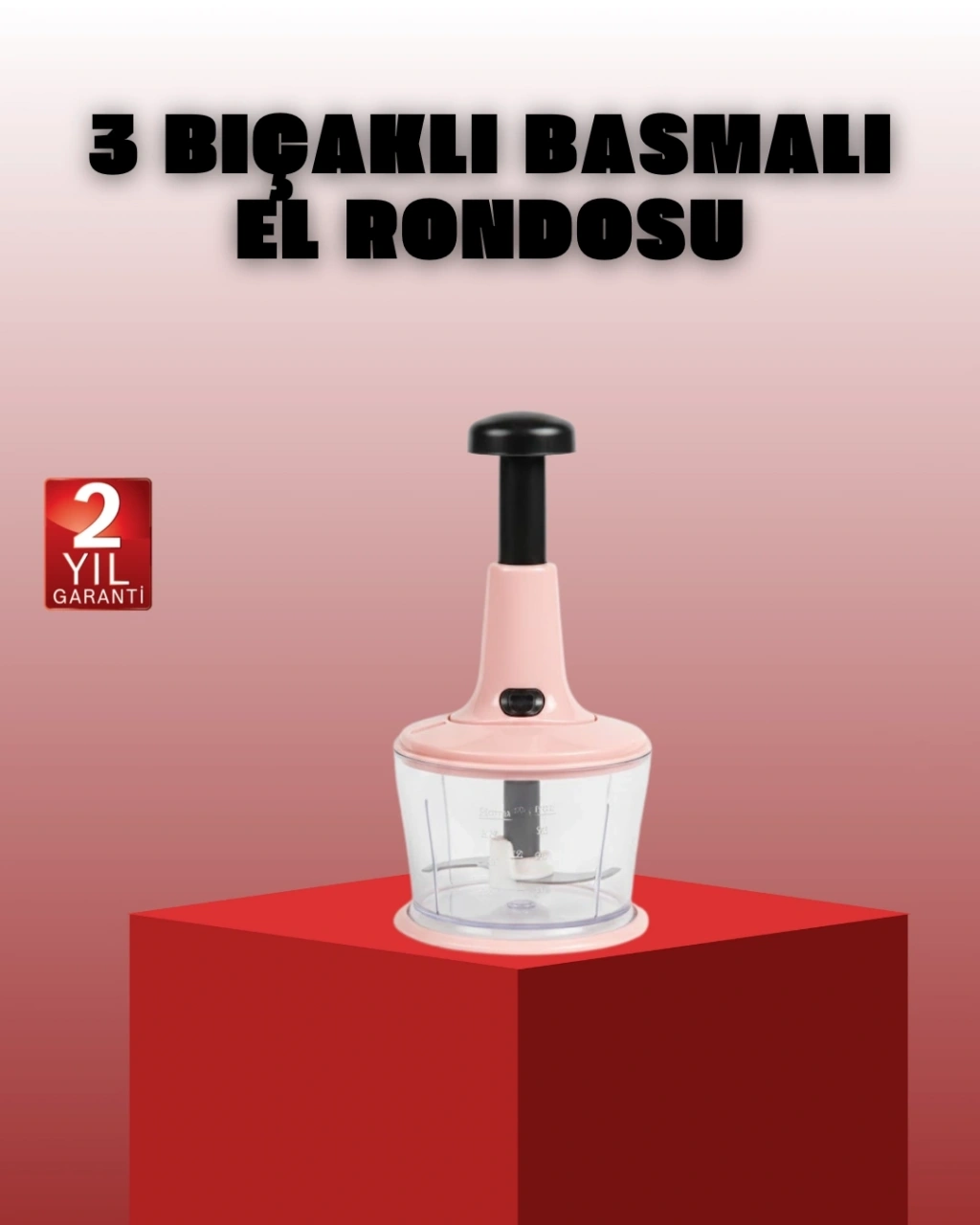 Manuel sebze rondosu, mutfakta hızlı ve zahmetsiz doğrama işlemleri yapmak isteyen kullanıcılar için tasarlanmış pratik bir mutfak yardımcısıdır. Bas-kes mekanizması sayesinde elektrik gerektirmeden çalışır ve tek elle kolayca kontrol edilebilir. Özellikle soğan, sarımsak, biber, yeşillik ve çeşitli sebzeleri kısa sürede eşit parçalar halinde doğramaya yardımcı olur.Keskin paslanmaz çelik bıçak yapısı, sert ve yumuşak gıdalarda etkili performans sunar. Güçlü gövdesi sayesinde kullanım sırasında kayma veya dağılma yapmaz. Geniş haznesi, tek seferde daha fazla malzeme doğramaya olanak tanıyarak zamandan tasarruf sağlar. Günlük yemek hazırlıklarında büyük kolaylık sunar.Manuel kullanım özelliği sayesinde elektrikli ürünlere kıyasla daha güvenlidir ve her ortamda rahatlıkla kullanılabilir. Kamp, yazlık, öğrenci evi gibi alanlarda da ideal bir çözümdür. Kompakt tasarımı mutfakta az yer kaplar ve kolayca saklanabilir.Temizliği son derece pratiktir. Parçaları ayrılabilir yapıda olduğu için elde yıkamaya uygundur. Dayanıklı malzemesi uzun ömürlü kullanım sunar. Ergonomik üst basma atı, el yorgunluğunu minimuma indirir.Manuel sebze rondosu, hızlı yemek hazırlamak isteyenler, pratik çözümler arayanlar ve mutfakta düzen isteyen kullanıcılar için ideal bir üründür. Zamandan tasarruf etmek ve mutfakta konforu artırmak isteyen herkes için vazgeçilmez bir yardımcıdır.