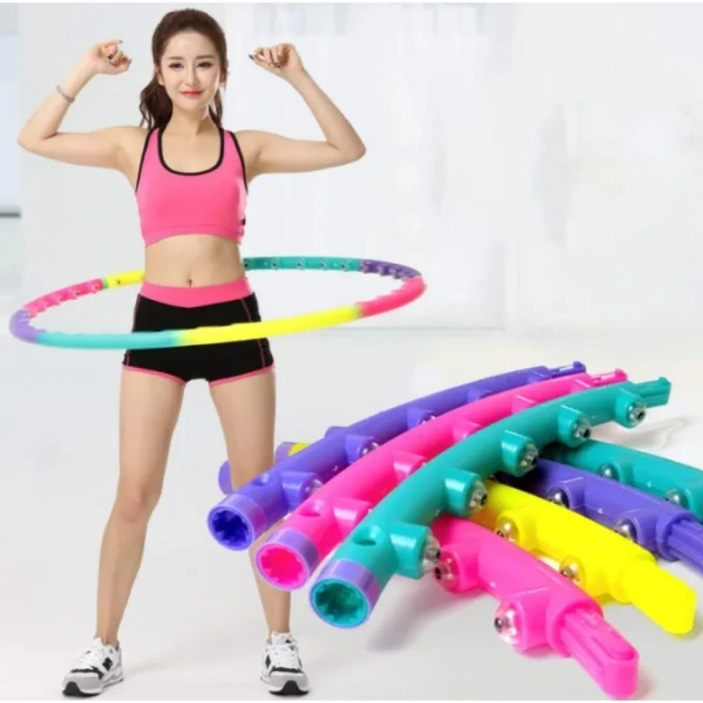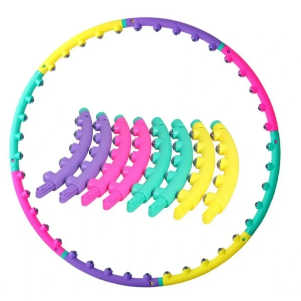 MASAJ BİLYELİ HULAHOPÜrün ÖzellikleriMasaj bilyeli hulahop, formda kalmak ve vücut şekillendirmek isteyenler için mükemmel bir egzersiz aracıdır. Düzenli kullanımda bel ve karın bölgesindeki yağların yakılmasına yardımcı olur, kasları sıkılaştırarak fit bir görünüm kazandırır. İç kısmında yer alan masaj bilyeleri, egzersiz sırasında kan dolaşımını hızlandırır ve vücuda masaj etkisi yak rahatlama sağlar. Renkli ve modüler tasarımı sayesinde kolayca takılıp sökülebilir, taşıması ve saklaması pratiktir. Dansla birleştirilen hulahop egzersizleri hem eğlenceli hem de yüksek kalori yakımı sağlar. Saatte 700 kaloriye kadar enerji harcatabilir. Günde 1-2 kez, 20 dakikayı geçmeyecek şekilde düzenli kullanım önerilir. Sağlam plastik yapısı uzun ömürlü kullanım sunarken 98 cm çapıyla hem başlangıç hem ileri seviye kullanıcılar için uygundur.Paket İçeriği1 adet Masaj Bilyeli Hulahop