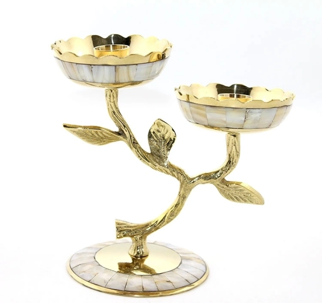 Pirinç Sedefli 2'li Şamdan 5934